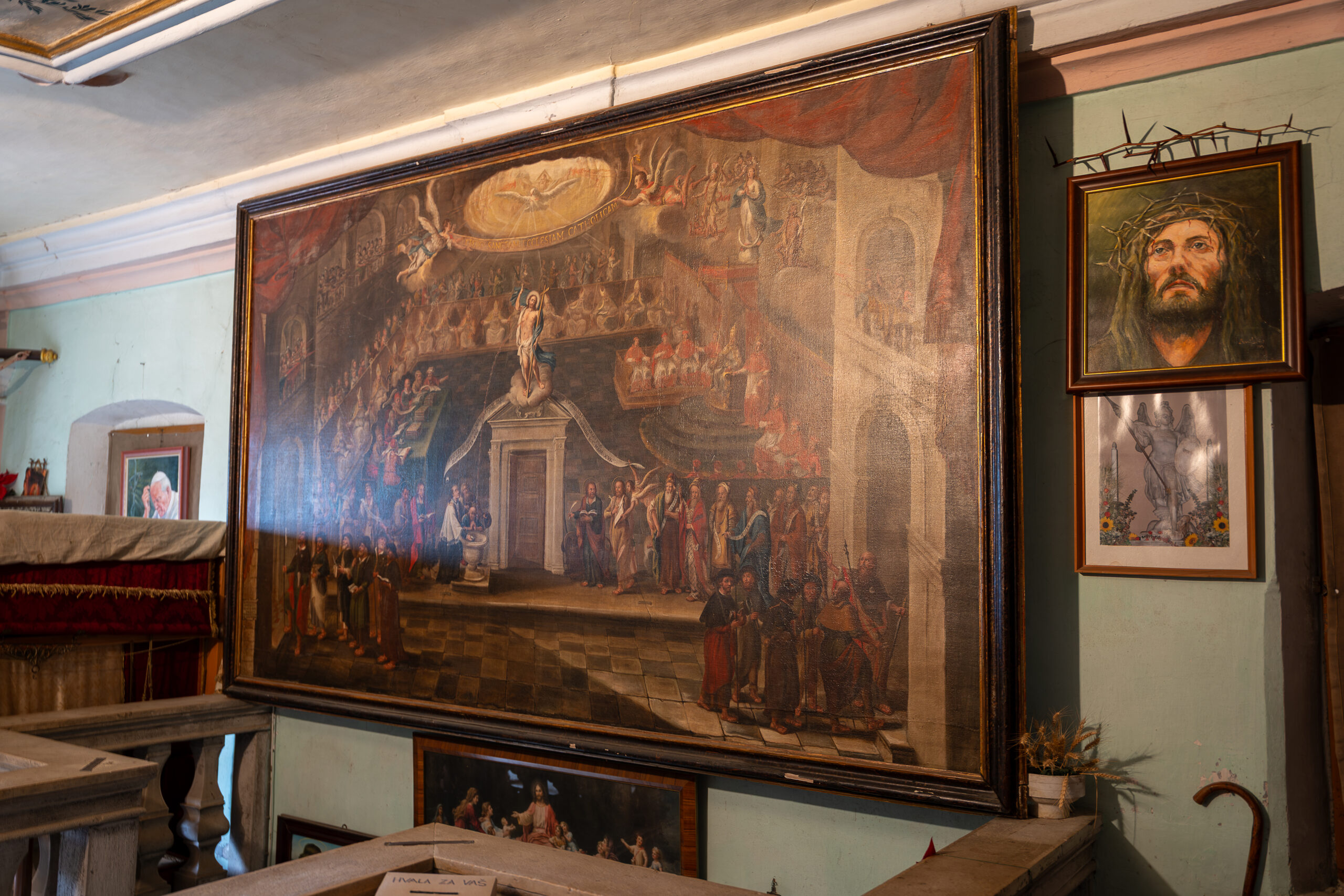 W kościele znajduje się też XIX-wieczna figura św. Anny – według opowieści naszego przewodnika, święta pomaga parom, pragnącym mieć potomstwo, a dowody na siłę modlitwy przed figurą spływają do parafii od lat w postaci listów z podziękowaniami i zdjęć dzieci, które urodziły się po wizycie w tutejszym kościele. Co ciekawe, jak przekonywał mężczyzna, rodzą się zazwyczaj… bliźniaki.