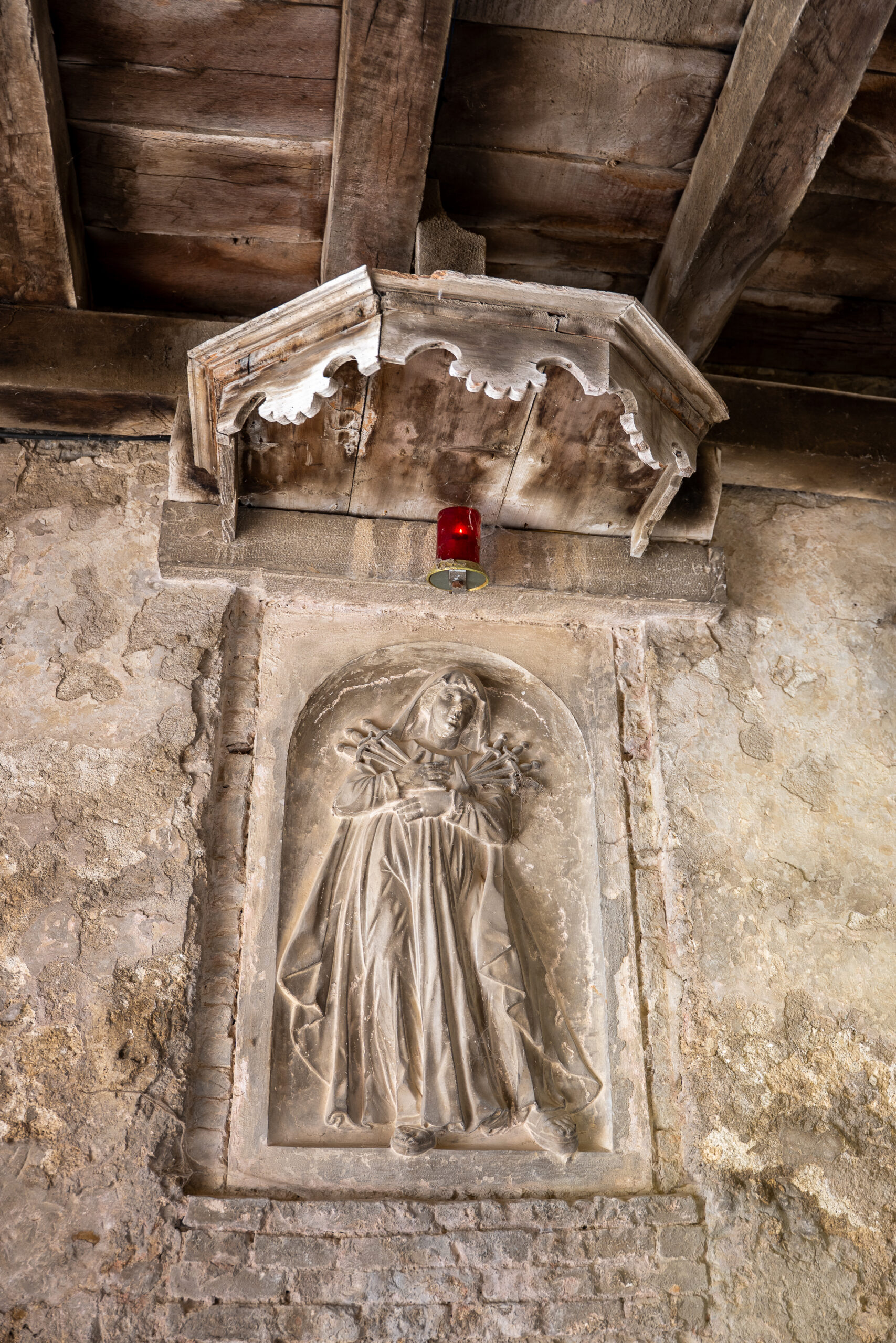 Nad miejscowością góruje kościelna dzwonnica, która niegdyś pełniła funkcję wieży obronnej. U jej podnóża znajduje się grobowiec, w którym – wedle słów oprowadzającego nas mężczyzny – pochowano wieloletniego proboszcza parafii, zasłużonego dla lokalnej społeczności.