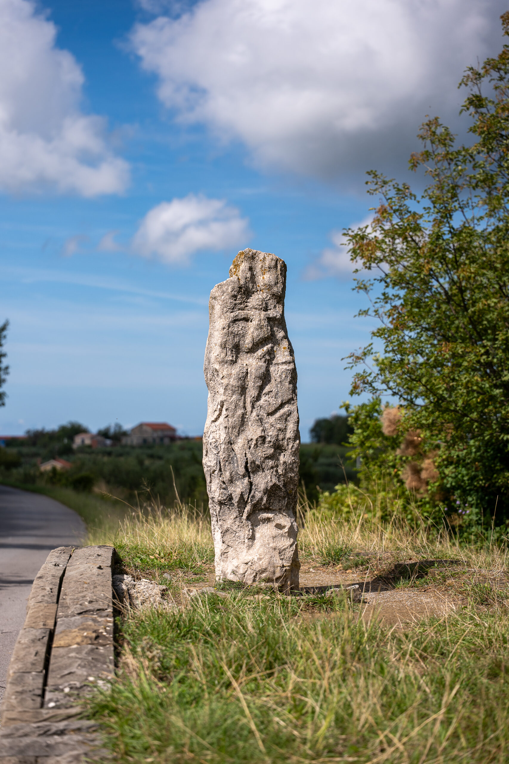 Pożegnaliśmy się serdecznie z naszym nowym znajomym, przespacerowaliśmy się między starymi domami i udaliśmy się w drogę powrotną. Niebawem okazało się, że zapomnieliśmy o największej atrakcji tego miejsca – znajdującym się za wsią niezwykłym kamieniu. A będąc precyzyjnym – jego kopii, bo oryginał znajduje się w muzeum, w nieodległym mieście Koper.